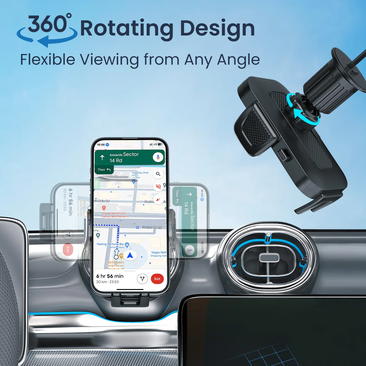 - Angles do not matter - Clamp Y mobile holder comes with a 360-degree rotational body to give you multi-angle support while driving. No matter how you reach out to your device, you can always get to it with the 360-degree support of this mobile holder. Moreover, extend the arm for 180-degree mobility support.