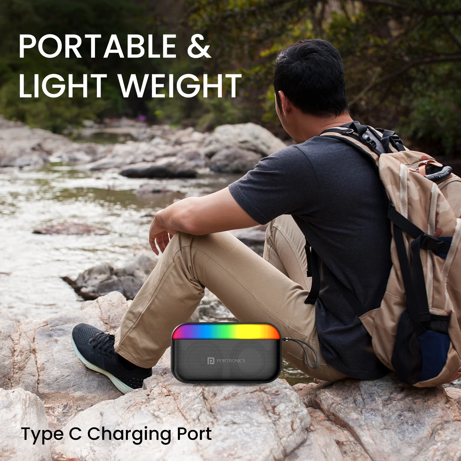 - 8 Watt HD Portable Speakers: Portronics Plugs 2, a portable bluetooth speaker with RGB lights that packs a punch with its 8W built-in speakers, and provides HD crystal clear sound.